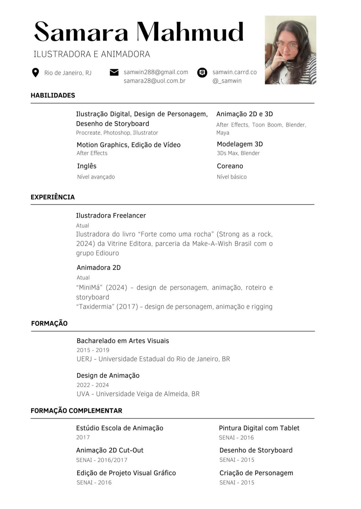Designer de personagens, animadora, roteirista e storyboarder do curta "MiniMá" (2024).